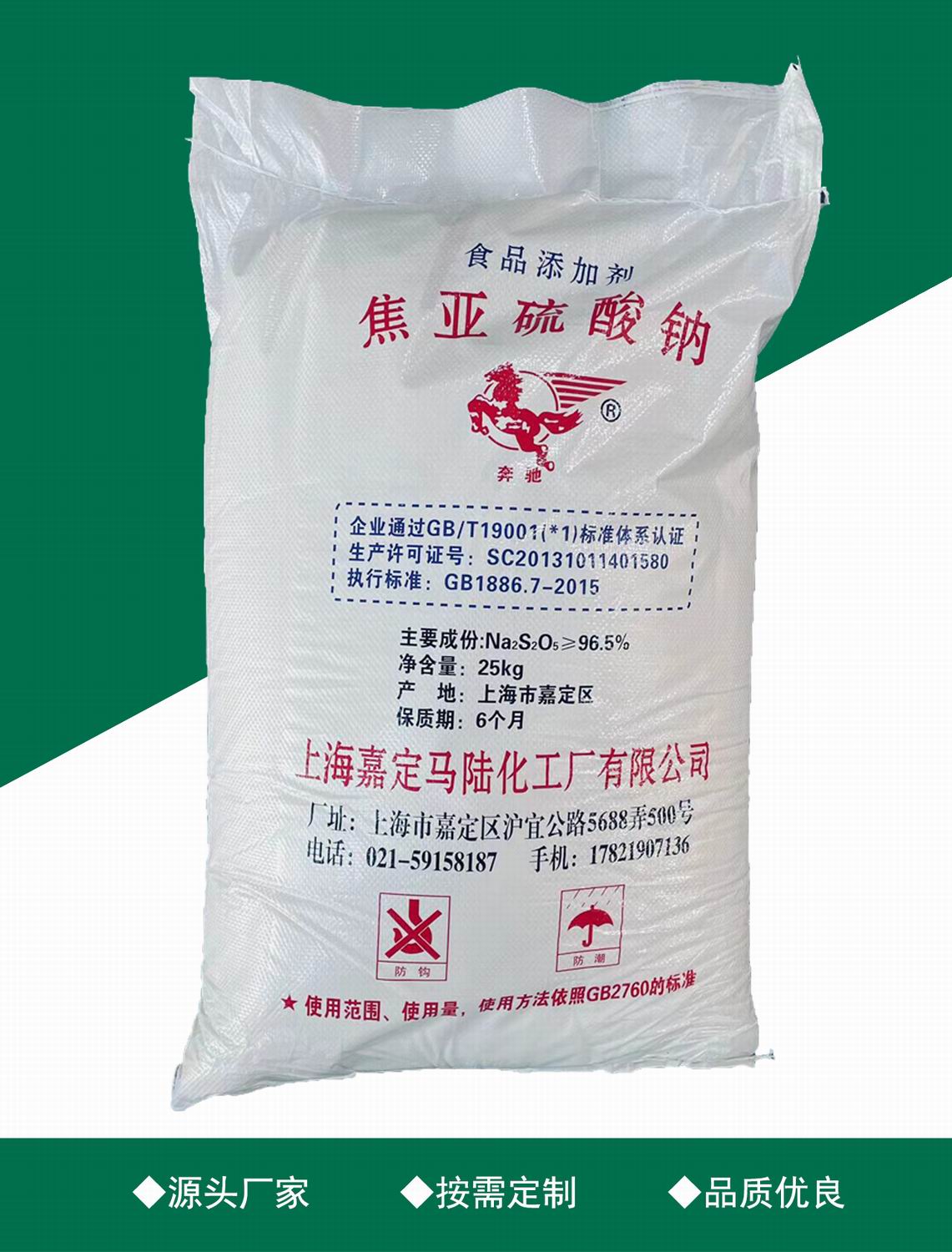 上海嘉定馬陸化工廠有限公司主營生產(chǎn),焦亞硫酸鈉、亞硫酸氫鈉等產(chǎn)品生產(chǎn),幾十年的專注焦亞硫酸鈉研發(fā)生產(chǎn),公司擁有完整、科學的質(zhì)量管理體系,為確保公司產(chǎn)品能夠長期立足于市場,增強客戶的粘性,可滿足客戶的非標定制需求,可提供產(chǎn)品各個用途的解決方案,公司重信譽、守合同、保質(zhì)量、快速發(fā)貨以,我們擁有專業(yè)的售前售中、售后團隊共同協(xié)作,確保用戶采購中的每個環(huán)節(jié)都能有滿意的體驗度。